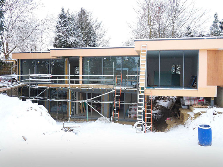 The design and construction technique was planned to maximise the practical skills of the client, limiting the amount of trades to be employed. My input was scheme design; planning; Building Regulations. The client undertook all interior and fit out design. The building is highly thermally efficient utilising passive solar design.