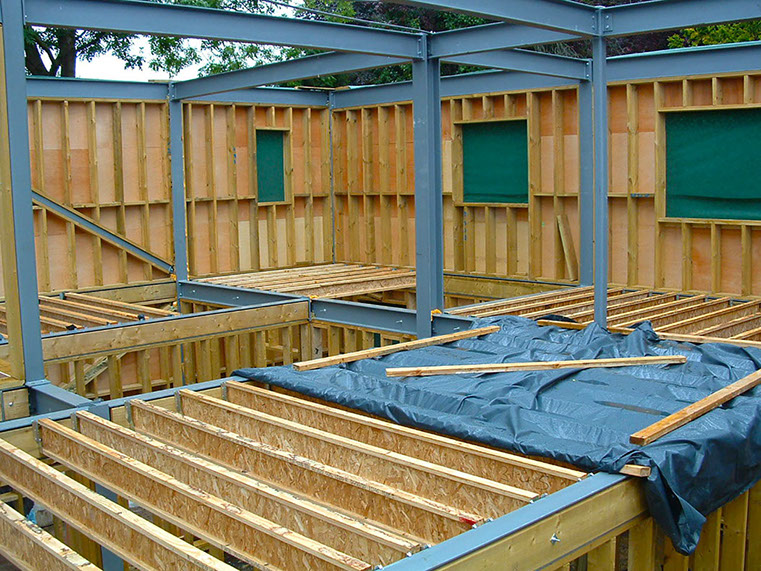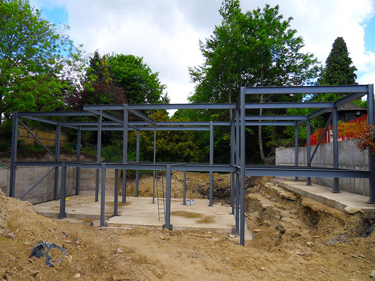 Foundations constructed by the client. Steel frame erected by a sub contractor.This allowed the client to continue the build virtually unaided.