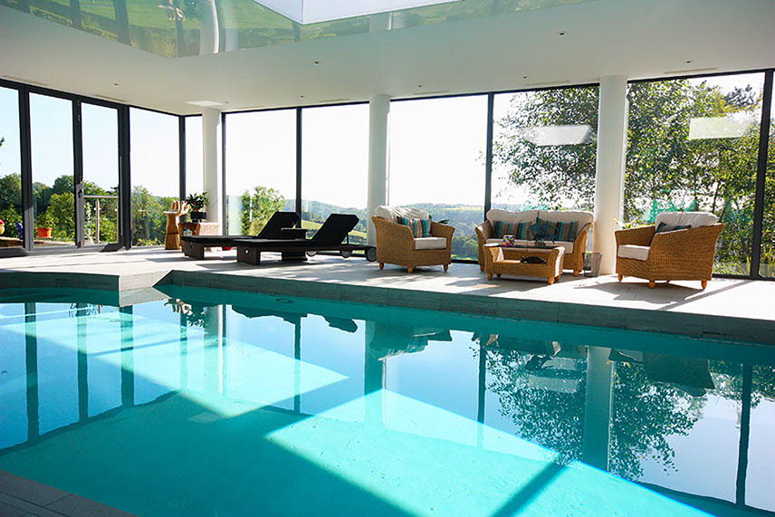 A fantastic site overlooking a valley. Working directly for the client, my brief was to turn an outside pool into an indoor pool, form a gym, changing room, kitchenette and link to the house. The client set the budget from the outset which was challenging. The design of the building was driven by the following key considerations;