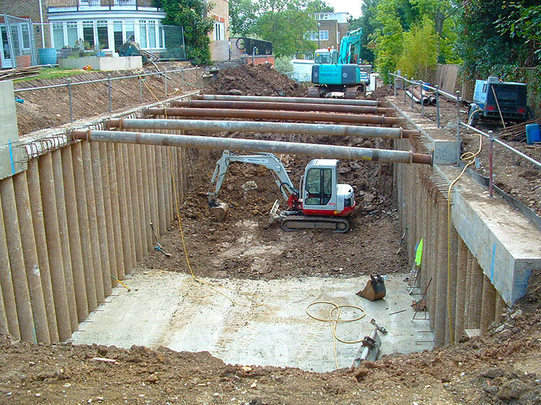 The client wanted a 15m long pool for daily exercise but did not wish to lose any garden which dictated a subterranean solution. The project included a gym, changing room, steam room and a double garage. My input was scheme design; planning application; working drawings; Building Regulations; tender action; contract administration; site inspection; valuations and certification.